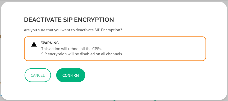 Aparece el cuadro de diálogo Desactivar cifrado SIP.