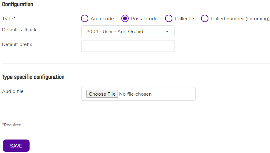 Met deze optie kun je een routing maken op basis van een postcode die door de beller is ingevoerd. Je kunt een aankondiging uploaden die de beller te horen krijgt met de vraag om een 4-cijferige postcode in te voeren.