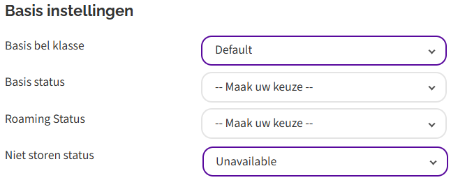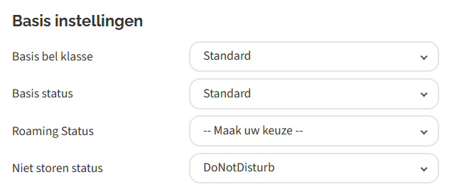6 Selecteer onder Basis instellingen - Basis bel klasse de oproepklasse die bij de DND-status en het DND-profiel hoort. Dit zorgt ervoor dat de basis bel klasse wordt toegepast op alle inkomende oproepen en wanneer DND is ingeschakeld, werkt het voor alle oproepen.