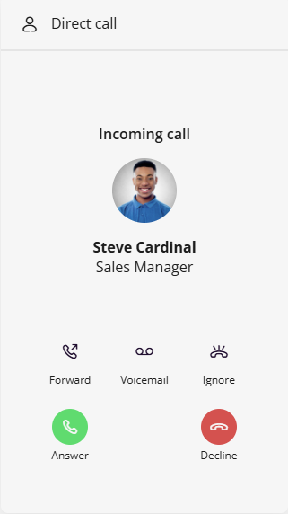 When you receive an incoming call, you have several options. You can accept the call, forward it to another destination, such as a colleague or your voicemail, or reject it.