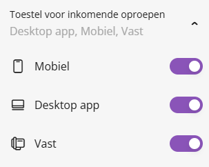 Als je een bureautelefoon hebt geïnstalleerd en gekoppeld met Enreach Contact, kun je deze optie selecteren om inkomende gesprekken op je bureautelefoon te laten signaleren. |