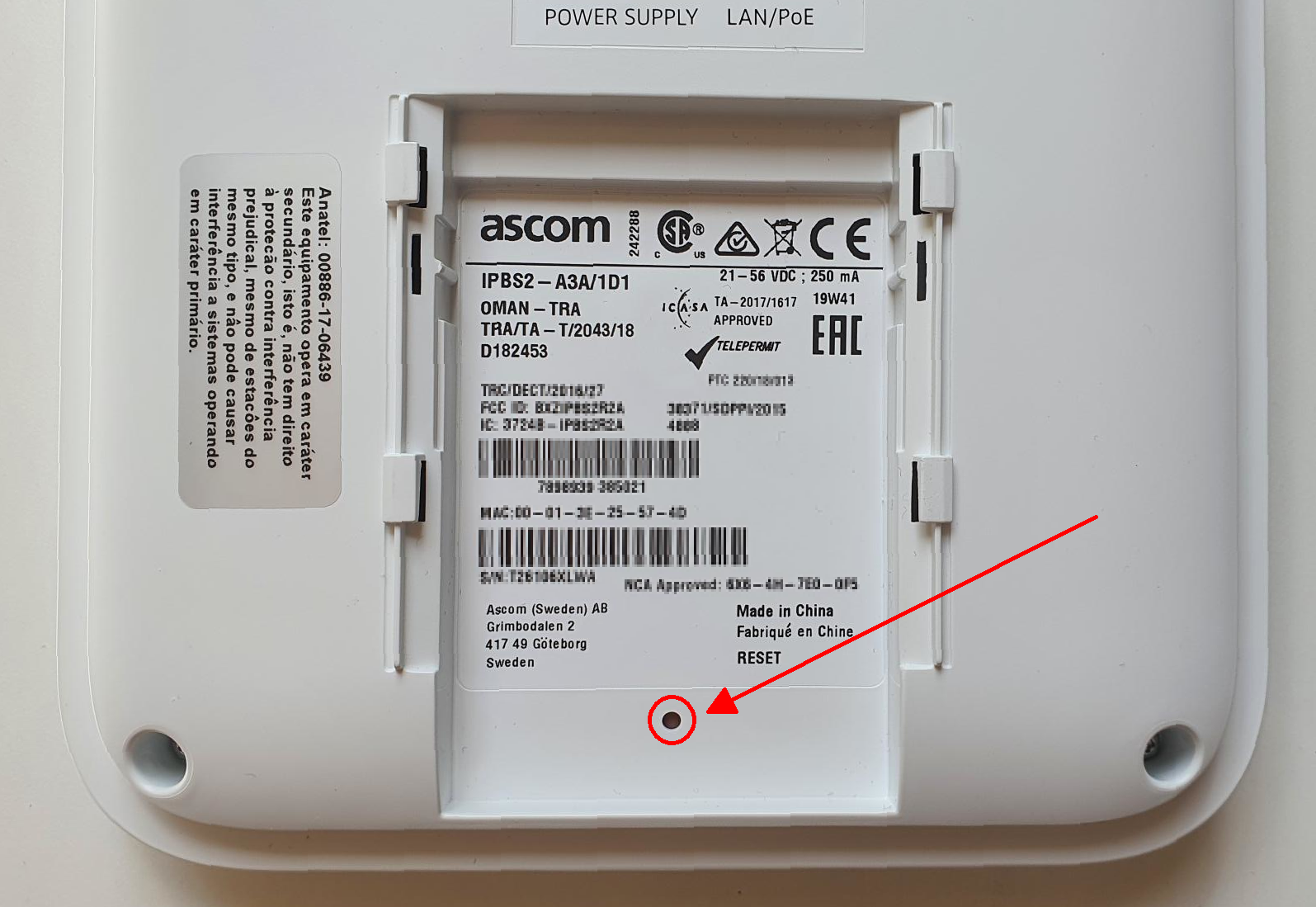 Ein Factory-Reset setzt alle Konfigurationsparameter auf Standardwerte. Der Resetknopf befindet sich auf der Hinterseite der Basisstation: