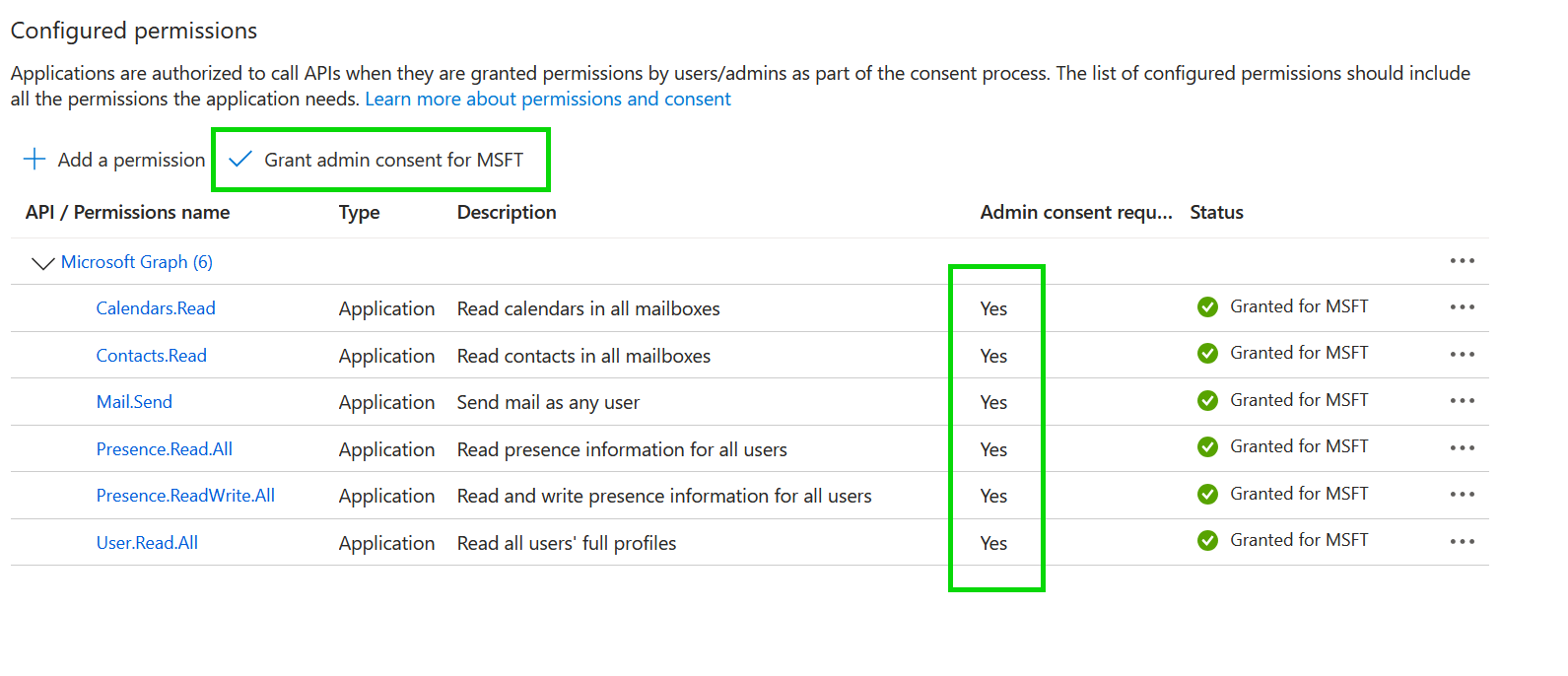 Jede benötigte API-Berechtigung ist Ihrer Domain zugewiesen: