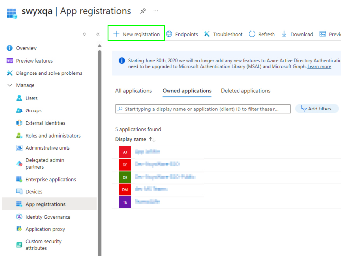3 Wählen Sie App registrations.