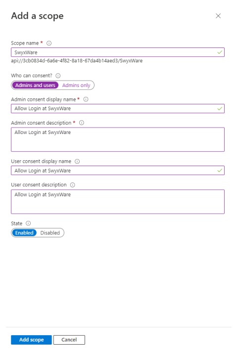 13 Wählen Sie Enabled und klicken Sie auf Add scope.