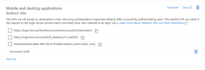 19 Unter Mobile and destktop applications klicken Sie auf Add URI.