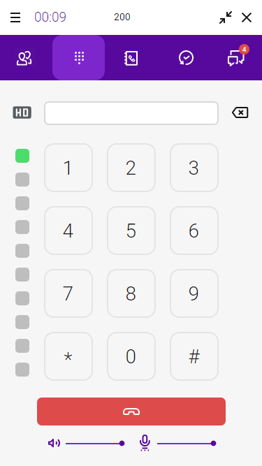 You can use the Dialer as on a smartphone, initiating calls to fixed and mobile numbers and company extensions.