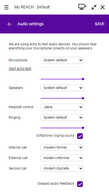 You must select the preferred device in the audio settings in Enreach Contact Desktop. This is mandatory for Headset control. The selection System default will not allow headset integration.