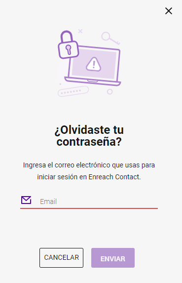 2 Introduce la dirección de correo electrónico asociada a tu cuenta de Enreach Contact.