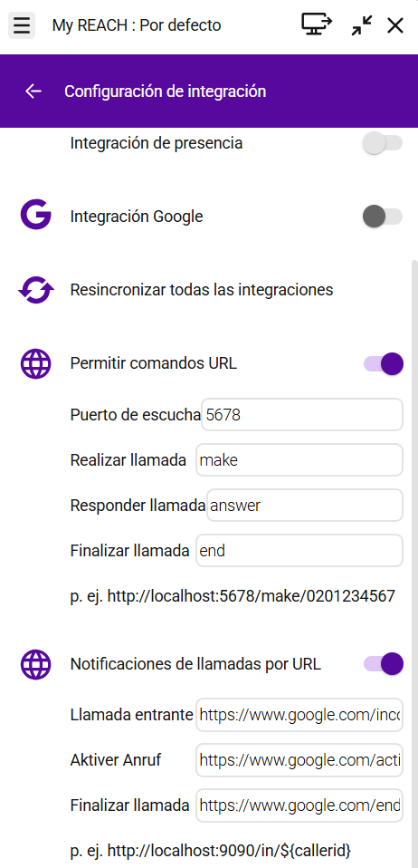 Enreach Contact Desktop ahora admite el control remoto de llamadas mediante URLs de comando y puede enviar notificaciones Webhook a servicios externos para procesar eventos de llamadas.