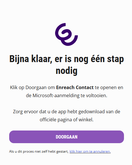 Je wordt aangemeld bij Enreach Contact Desktop.