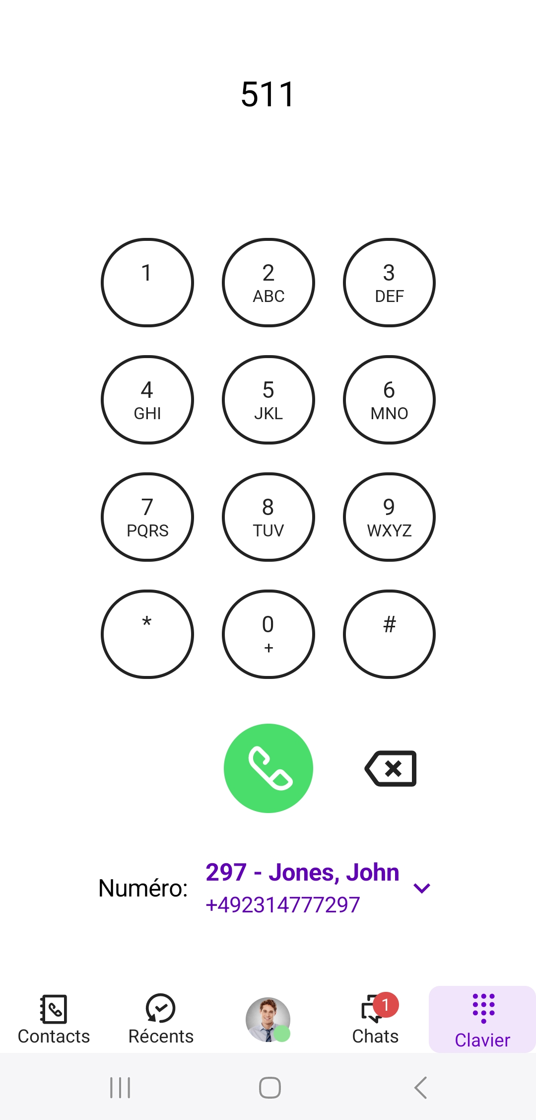 L'icône vous permet d'accéder à un clavier numérique que vous pouvez utiliser pour saisir directement des numéros de téléphone, comme sur un téléphone normal. Vous pouvez copier des numéros de téléphone ainsi que des caractères DTMF à partir d'autres applications et les coller dans le champ de saisie situé au-dessus du clavier. Voir également le chapitre Pour commencer et terminer un appel via le composeur.