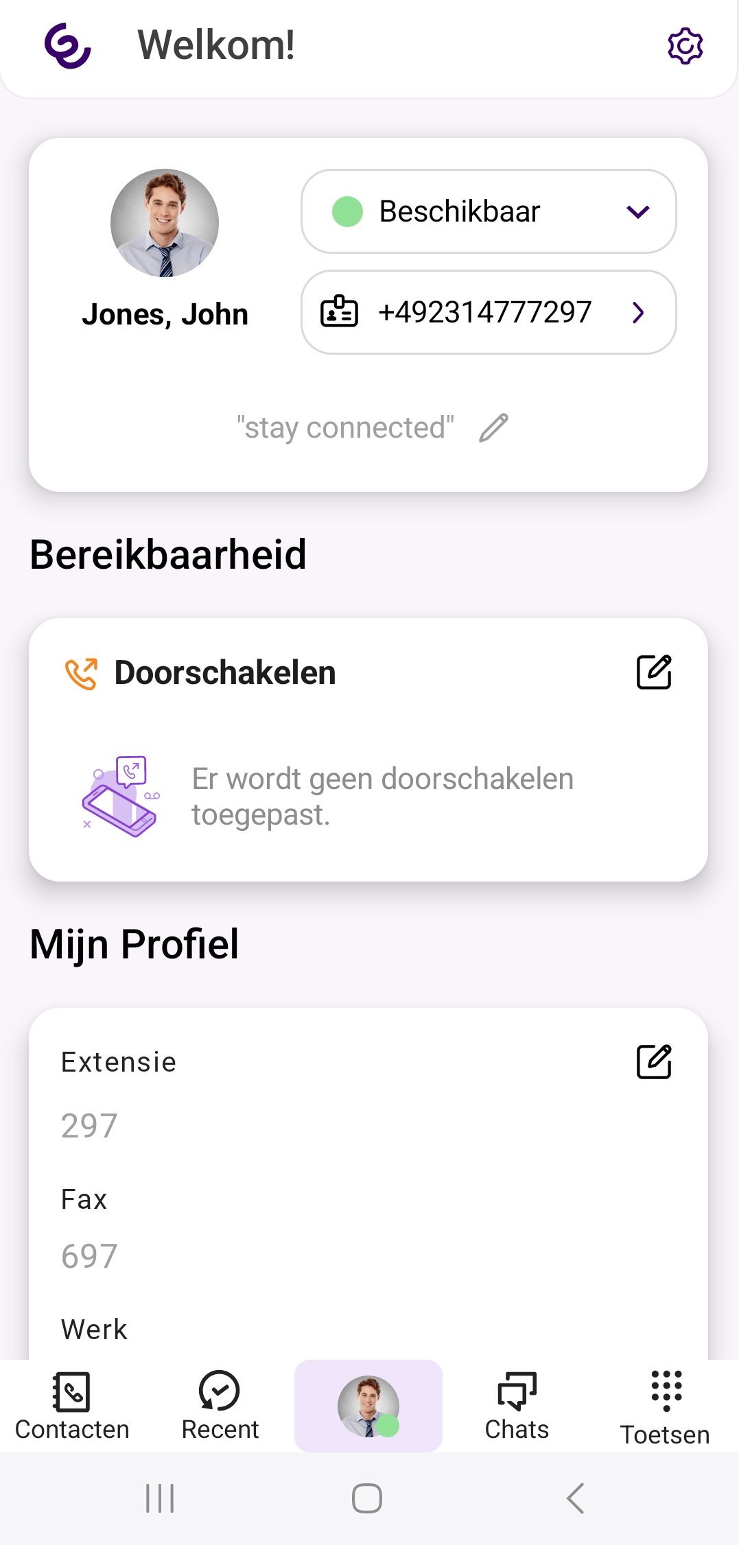 Gesprek doorschakelen is ook zichtbaar op het dashboard en kan direct worden aangepast.