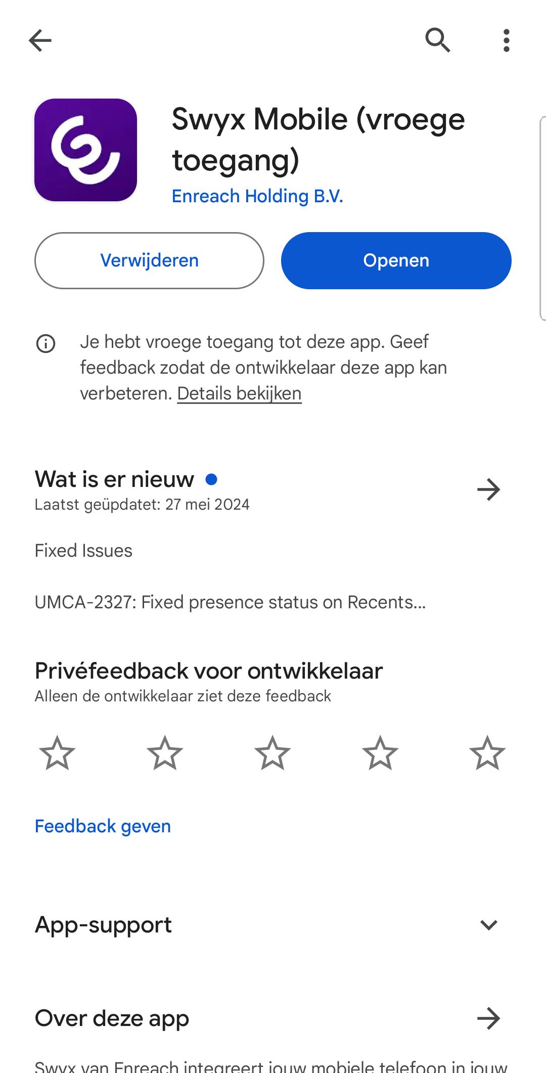 | Om feedback te sturen over Swyx Mobile is zowel een beoordeling als een schriftelijke reactie nodig. |