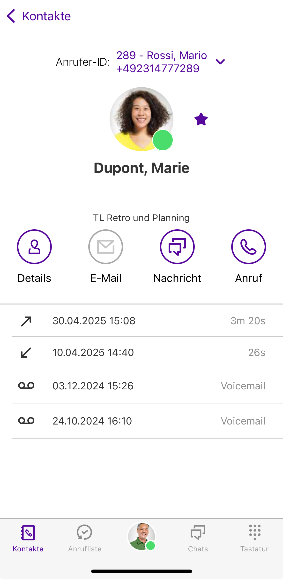 *Die hinterlegten Kontaktinformationen wie Durchwahl, Telefonnummern und E-mail-Adresse werden angezeigt.