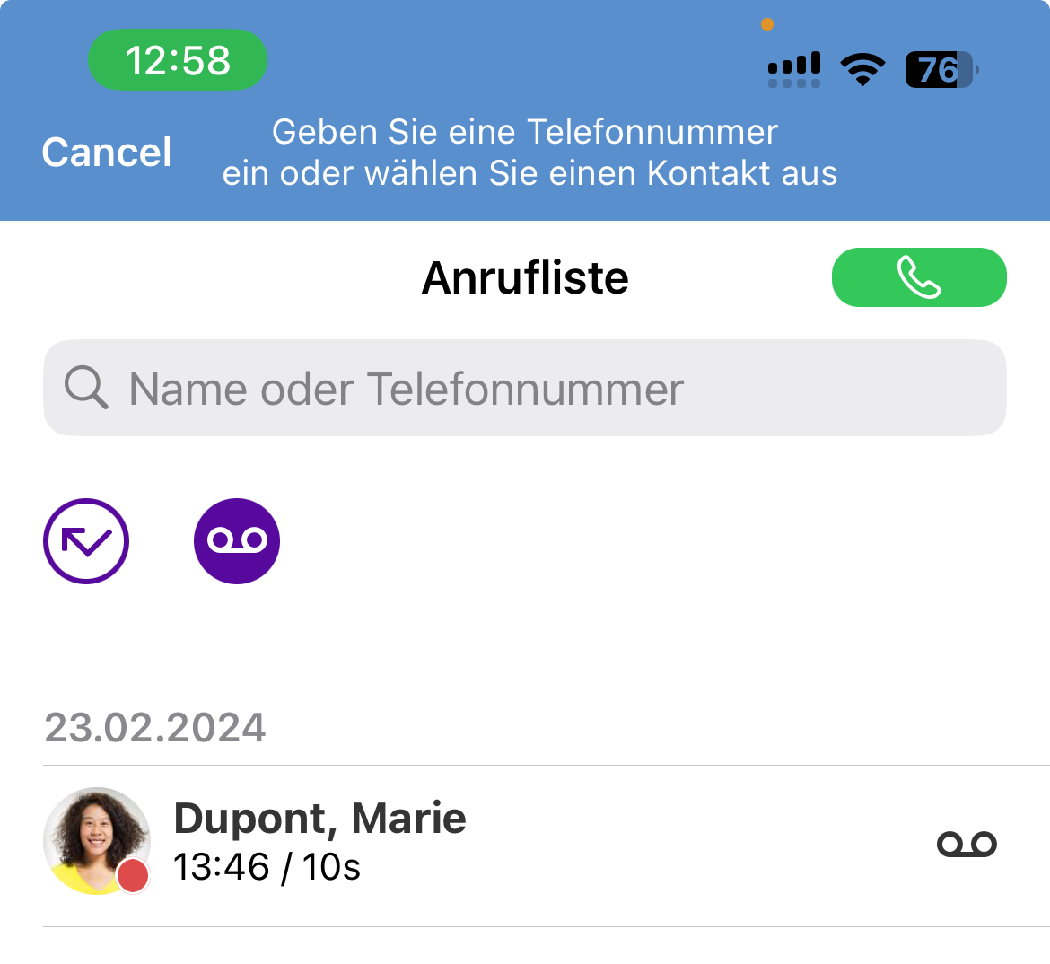 Beim iPhone X und neueren Modellen wird die grüne Leiste für einen aktiven Anruf in der oberen linken Ecke des Bildschirms angezeigt. Bei älteren iPhones erstreckt sich die Anzeige über die gesamte Statusleiste.