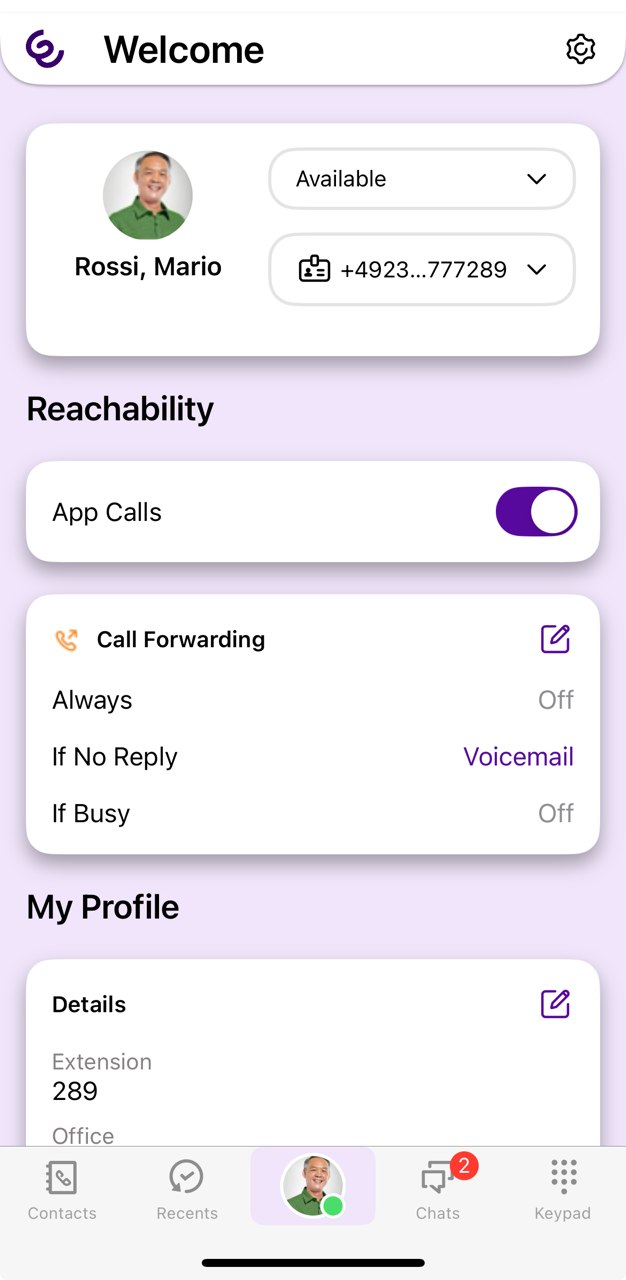 Status signaling and Caller ID and see at a glance which caller ID you use for outgoing calls. Further personal information such as your extension number or e-mail address can be found at