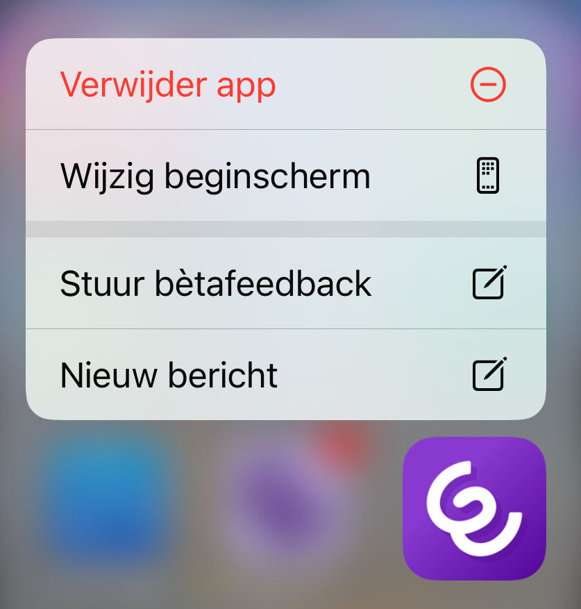 1 Raak het app-pictogram op het startscherm aan en houd het vast.