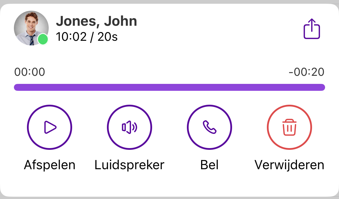 Behalve het afspelen van de voicemail, heb je de volgende mogelijkheden: