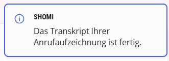 Nach einer bestimmten Zeit, die von der Länge des Gesprächs abhängt, erhalten Sie eine Benachrichtigung, dass die Zusammenfassung des Anrufs fertig ist.