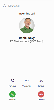 When you receive an incoming call on the device you have selected, see Device for incoming calls, you have several options. You can accept the call, forward it to another destination, such as a colleague or your voicemail, or reject it.