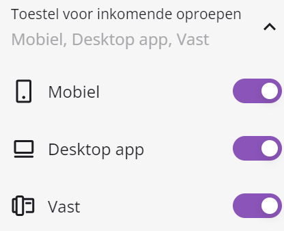 Als je een bureautelefoon hebt geïnstalleerd en gekoppeld met Enreach Contact, kun je deze optie selecteren om inkomende gesprekken op je bureautelefoon te laten signaleren.