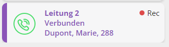 Auf der Bedienoberfläche werden die Leitungen durch Leitungstasten dargestellt. Die ausgewählte Leitung wird farblich markiert. Die für die Leitung konfigurierte Rufnummer für ausgehende Anrufe wird auf der Leitung angezeigt. Wenn Sie gerade einen Anruf aufzeichnen, wird dies auf der entsprechenden Leitung mit einem Symbol dargestellt.
