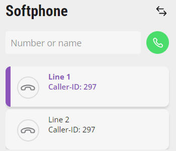 On the user interface, the lines are represented by line keys. The selected line is highlighted in color. The number configured on the line for outgoing calls is displayed on the line key. If you are currently recording a call, this is indicated by a symbol on the corresponding line.