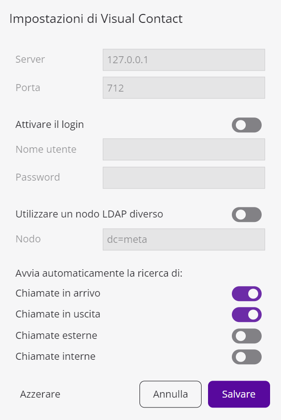 La ricerca automatica può essere impostata per i seguenti tipi di chiamata: