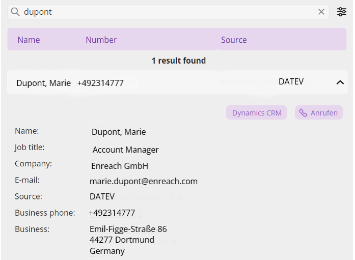4 Per visualizzare tutte le informazioni memorizzate per la voce selezionata (nomi, indirizzi, numeri telefonici, immagini, dati specifici riferiti al cliente ecc.), cliccare sulla freccia alla destra della voce.