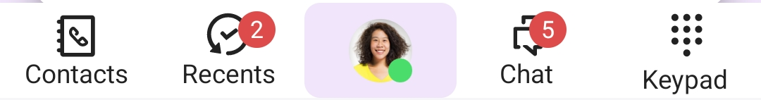 If you have missed or declined calls, the number of missed calls is displayed in the bar next to Recents if the area is not in focus.
