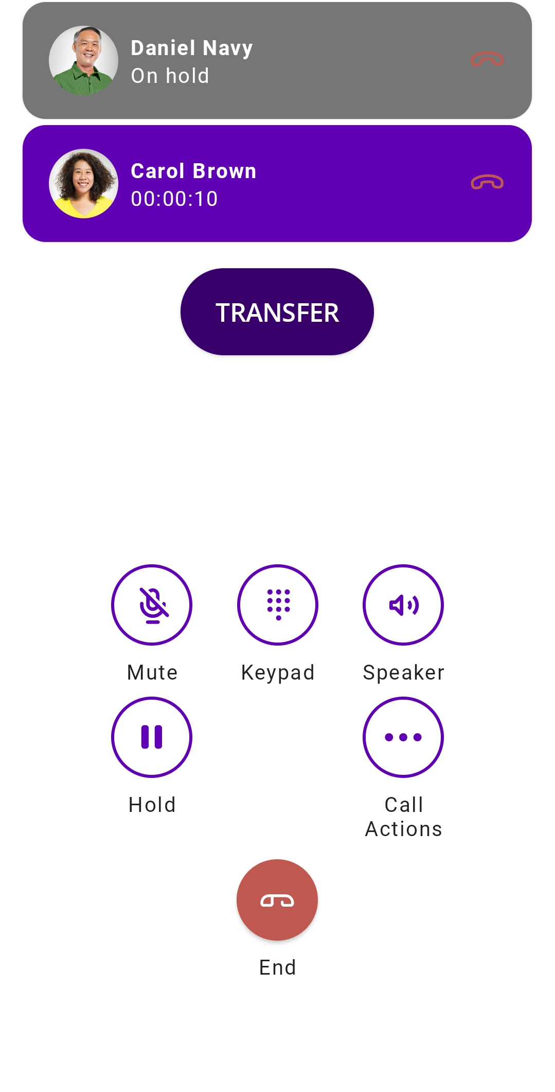 1 During an active call, tap on the subscriber on hold (with gray background) to talk to him/her afterwards.