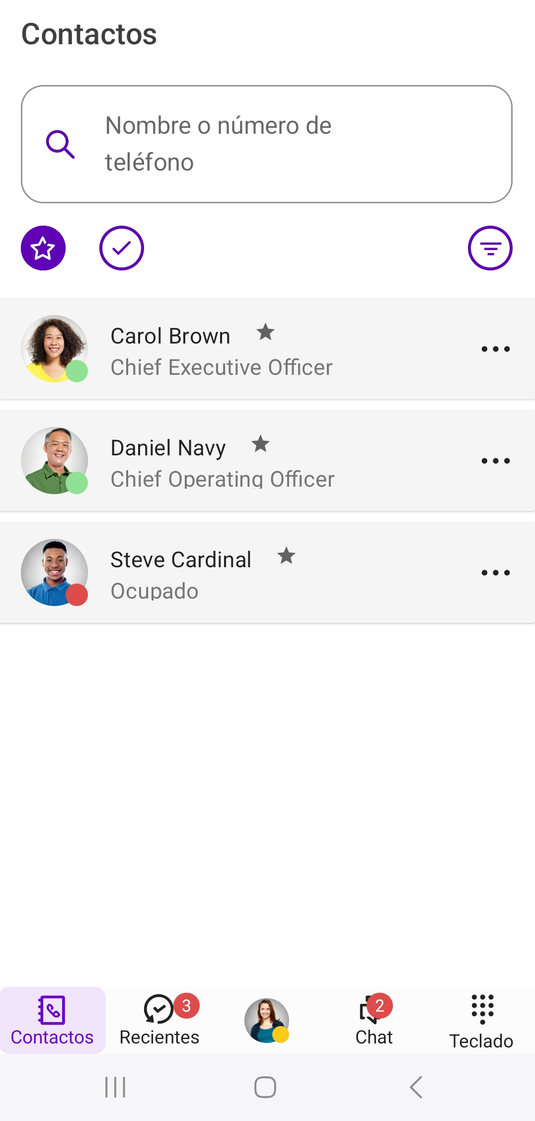 Locales | Para todos los contactos de tu dispositivo para estos contactos, primero debes conceder a Enreach Contact acceso de lectura (Añadir a las fuentes). |