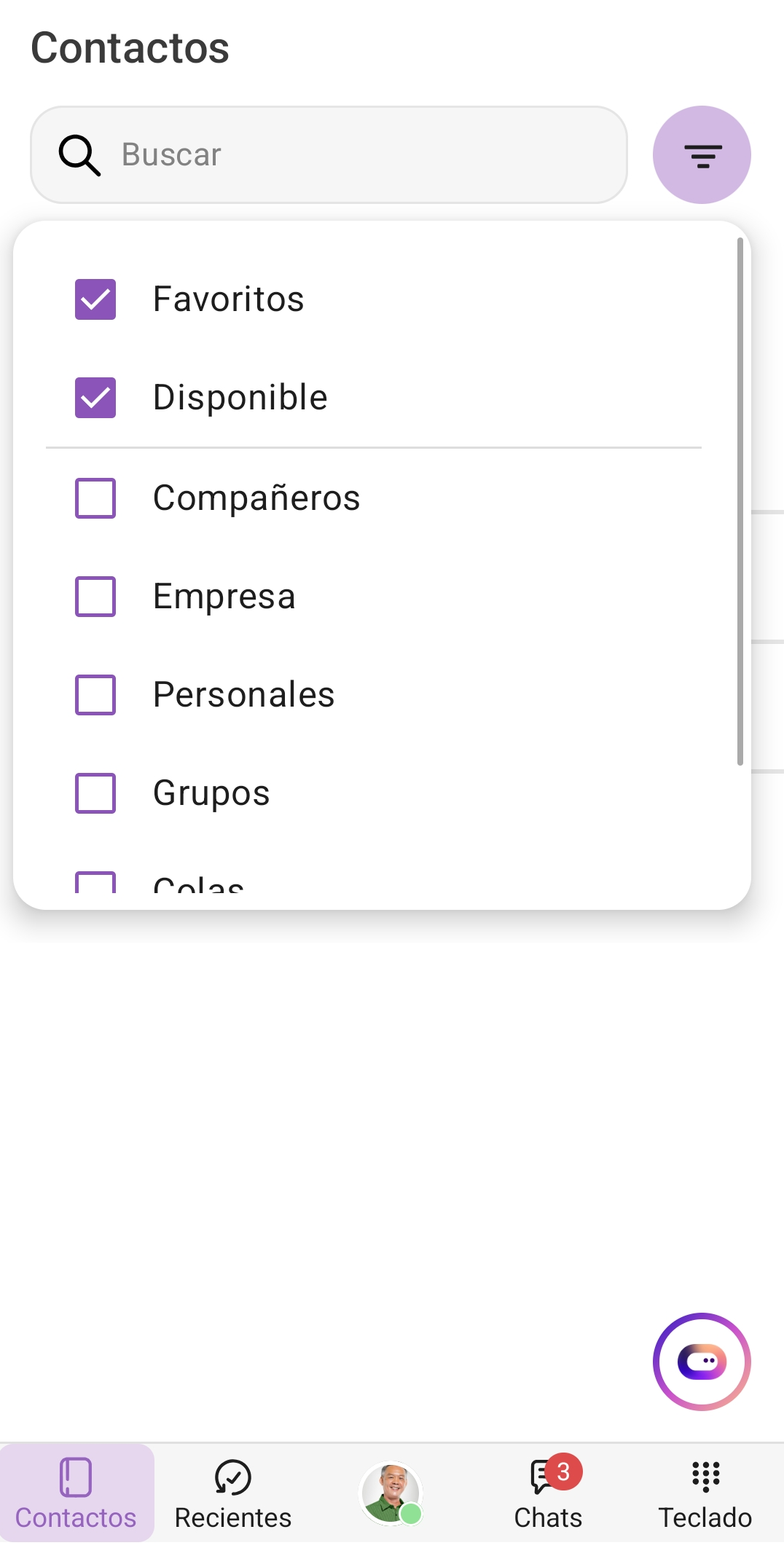 Disponible | Contactos que están en línea |