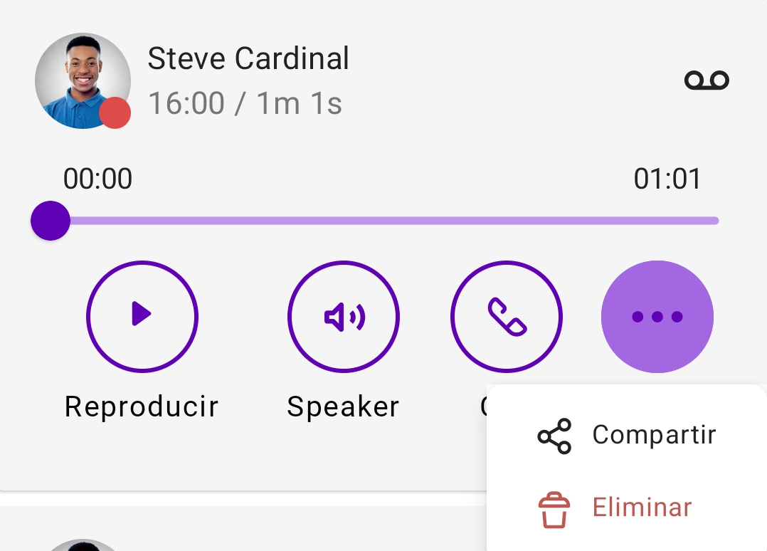 Además de reproducir el mensaje de voz, tienes las siguientes opciones:
