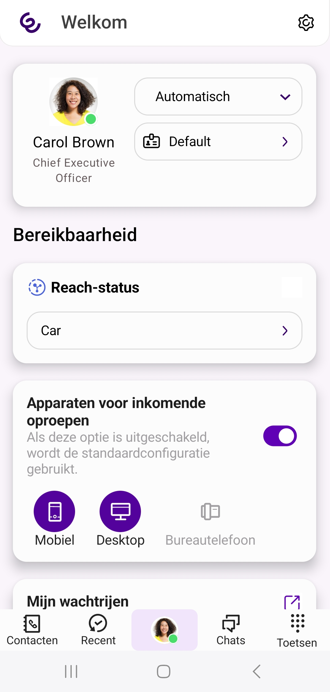 Bereikbaarheid is ook zichtbaar op het dashboard en kan direct worden aangepast.