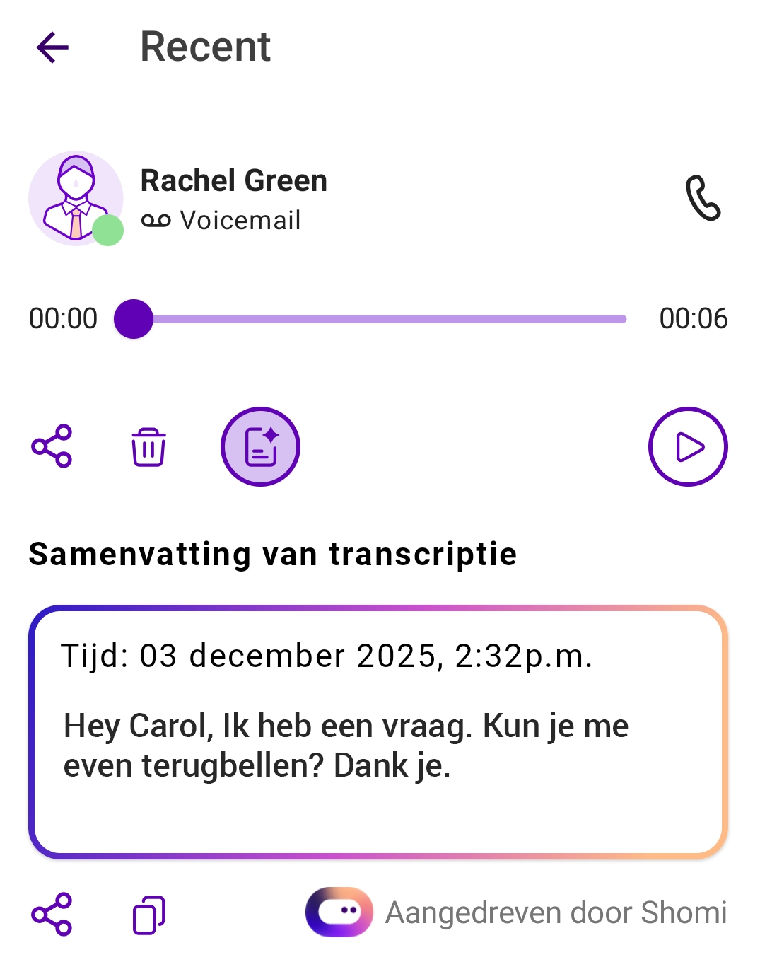 Behalve het afspelen van de voicemail, heb je de volgende mogelijkheden: