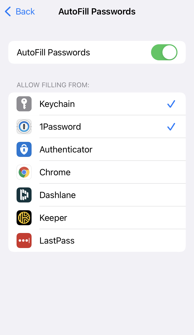 | You can only use AutoFill Passwords if you have stored credentials in a password manager. You can also only select two password managers from your list: the (iCloud) Keychain and/or a third-party passwort manager. |