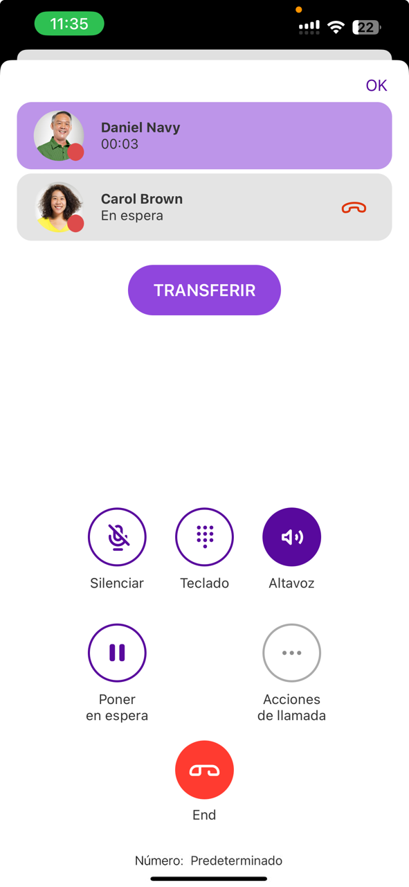 Se llama al contacto correspondiente y la primera llamada se pone en espera.