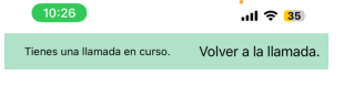 En el iPhone X y posteriores, la barra verde que indica que hay una llamada activa se muestra en la esquina superior izquierda de la pantalla. En los iPhone antiguos, se extiende por toda la barra de estado.